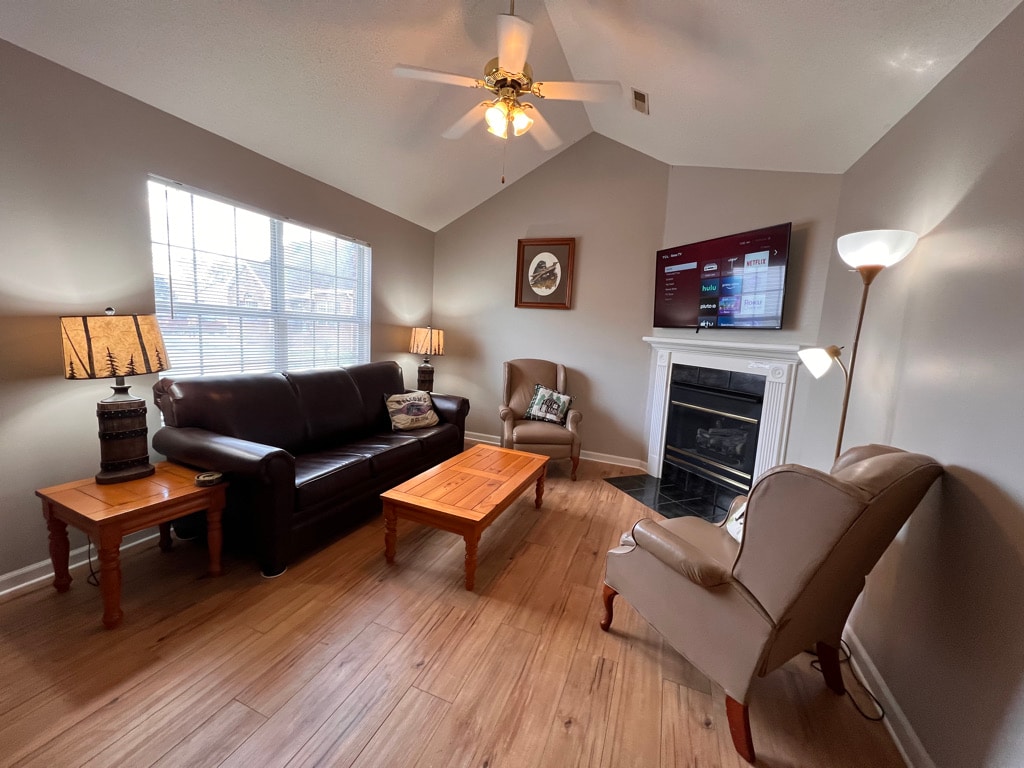 Pigeon ForgeBigfoot needs a place to get away from it all that is close to the mountains, but just a few blocks from Parkway. Now he's sharing it with you. Bigfoot Bungalow is close to everything! Relax in front of the fire and watch the 55 in LED Fire TV while the kids play Galaga on the arcade. Light up the grill for some burgers and hang out in the hot tub on the massive deck in view of Mill creek. The Island 1.5 miles away, Dollywood 4.2 miles away, and a trolly stop is 1 block away. Pool & Parking!