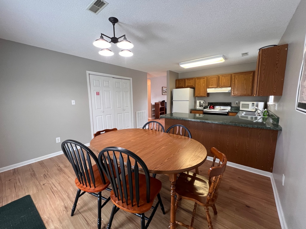 No eating or drinking in bedrooms. Please enjoy your meal in the dining room.